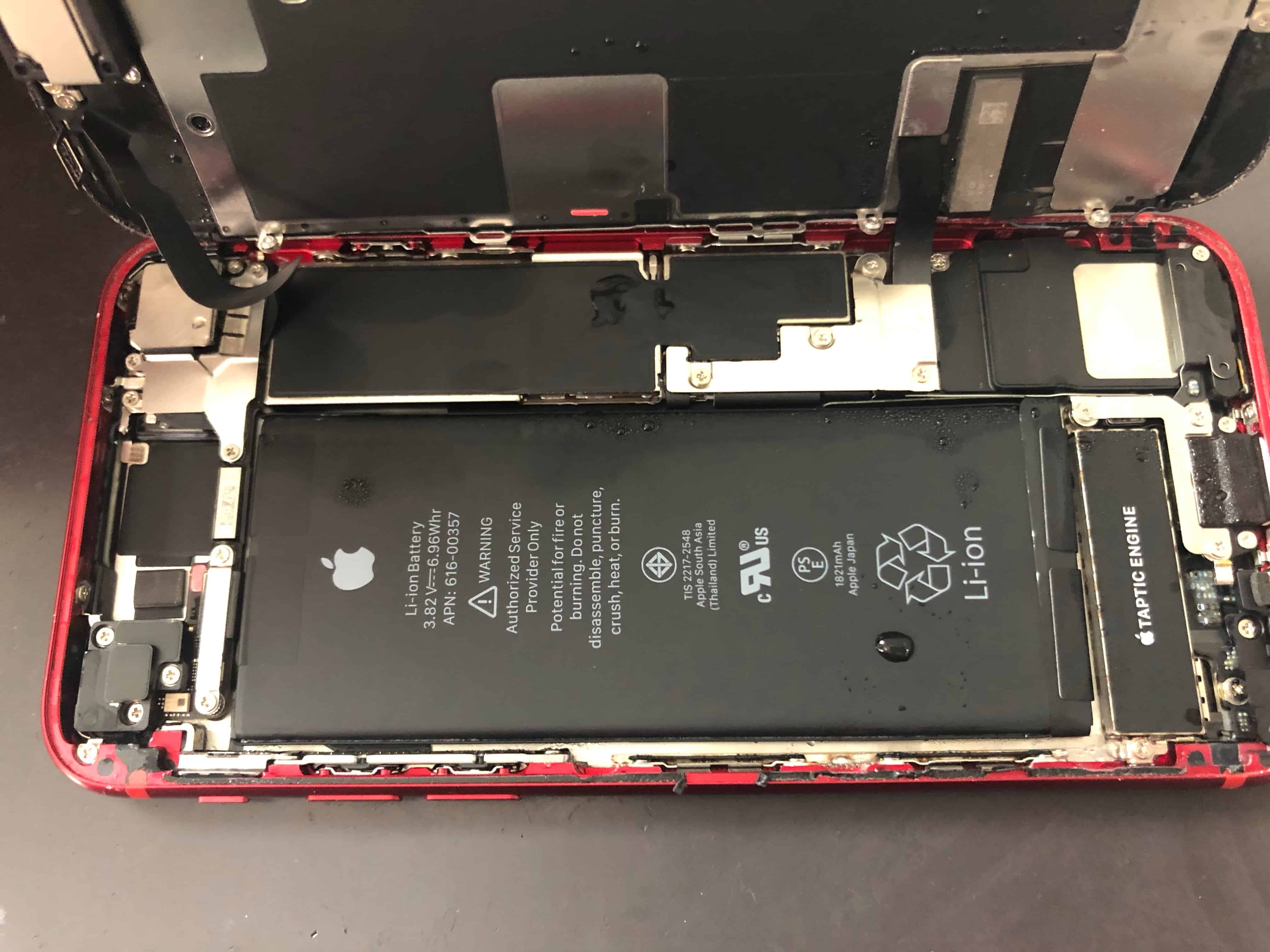 今回作業を行ったiPhone 8の中には一滴も水分が残らないように処理を行っているので、これ以上の水による故障の進行も防げることでしょう。