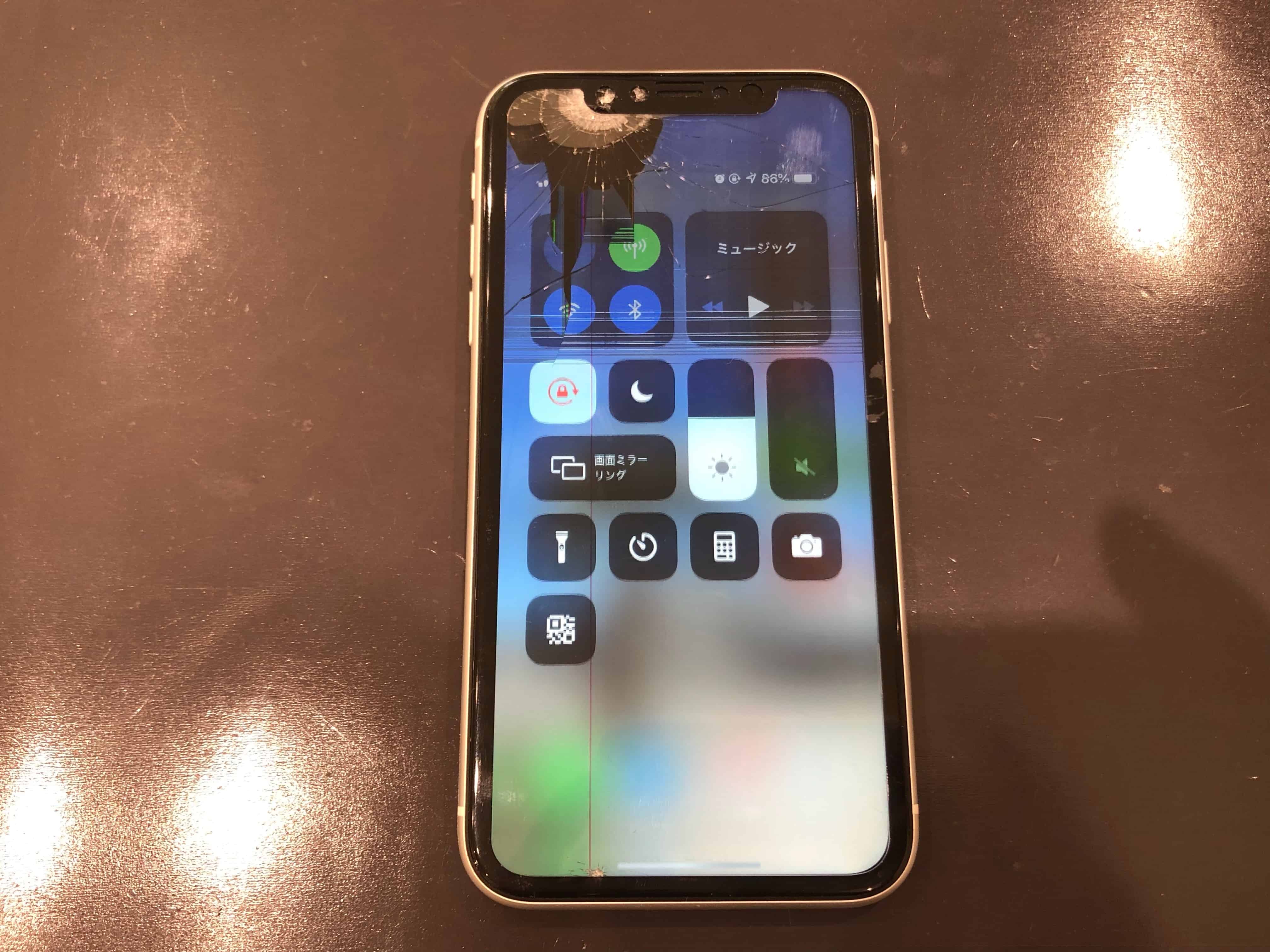 このiPhone XRはなかなかの損傷がありそうですがこの様な症状であれば画面部品の損傷が原因となっていることがほとんどなので、画面の交換修理によって修理可能です!