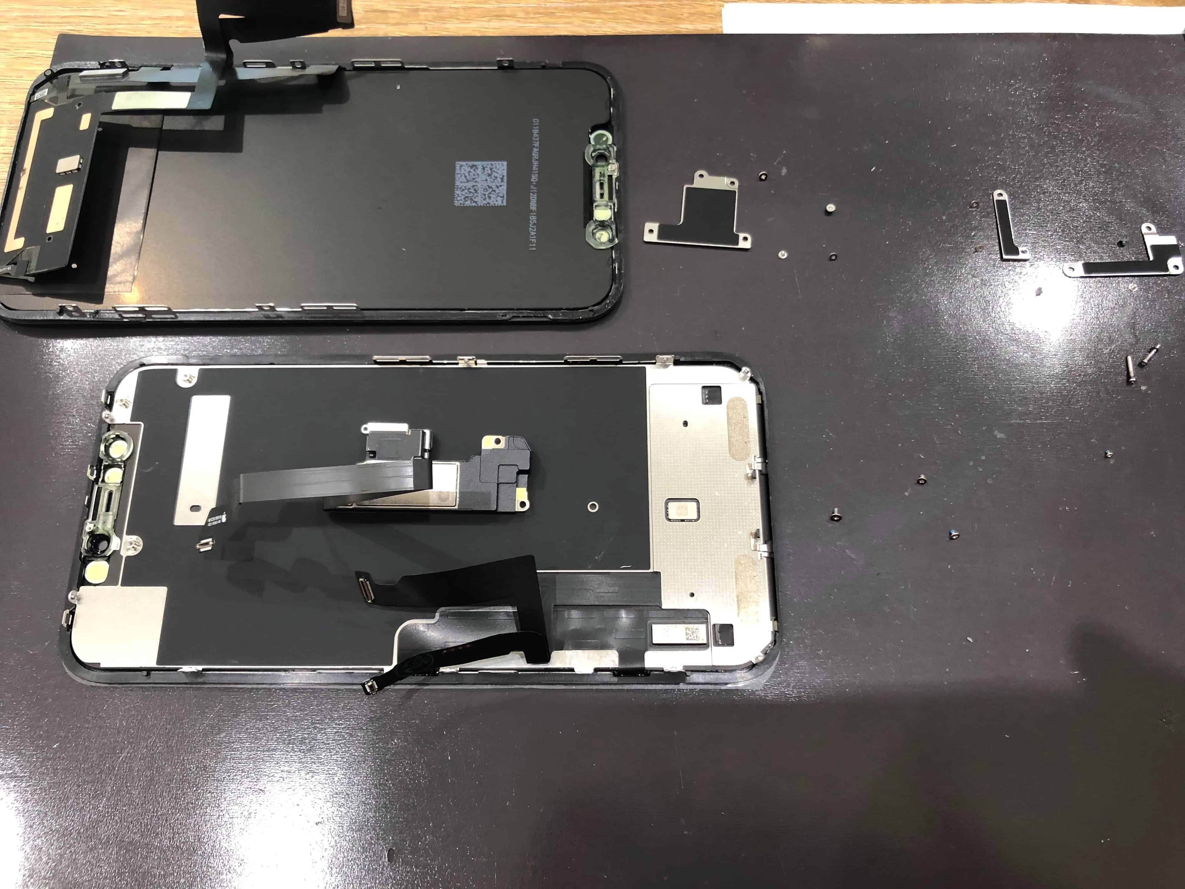上にあるのが破損している液晶画面で下にあるのが新しく装着する液晶画面になります。