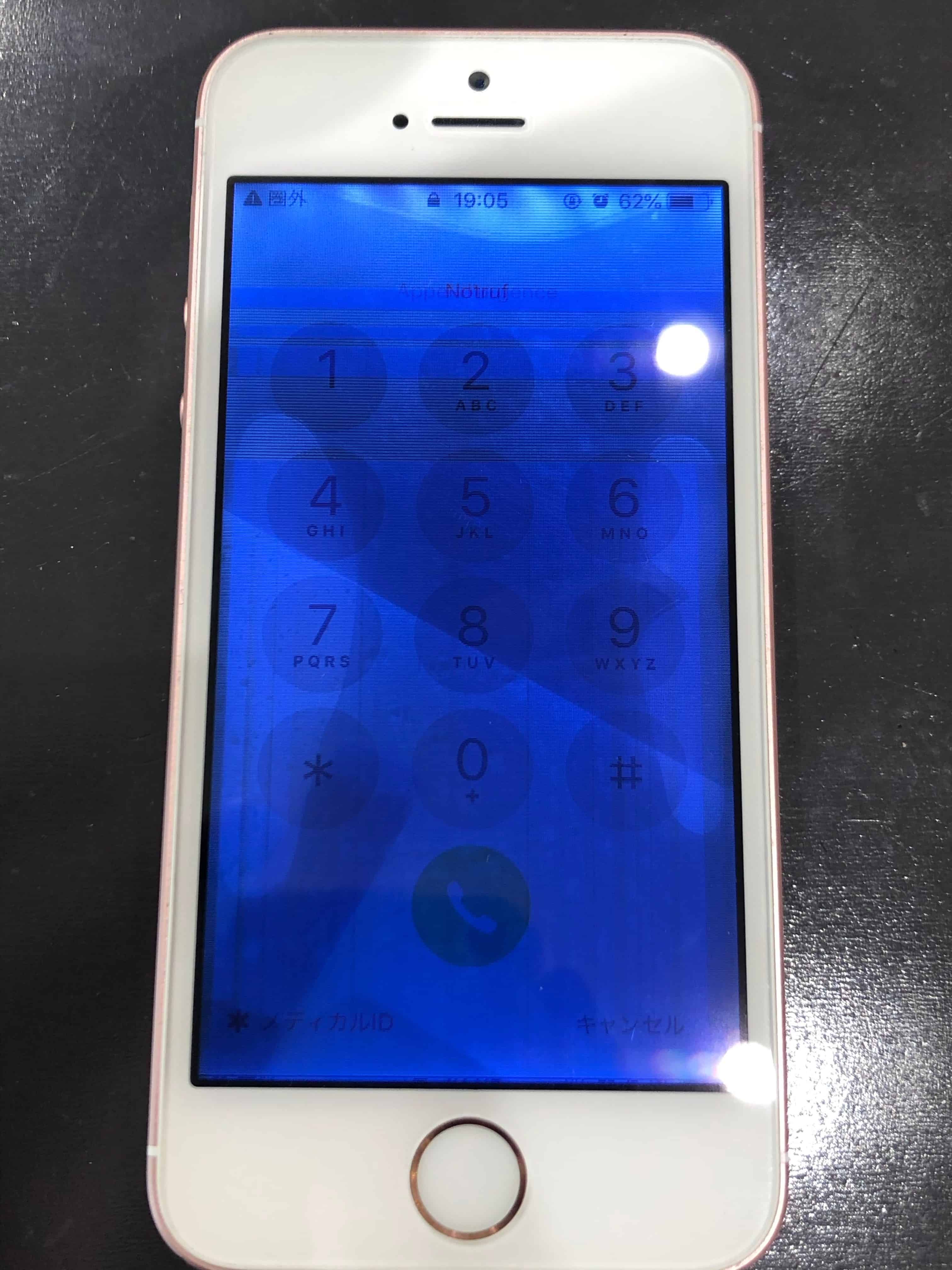 水濡れしたiPhoneでは液晶部品の故障でバックライトのムラが出来てしまっている場合は多いのですが、そのような故障の中でも今回はかなり影響が生じていますね。