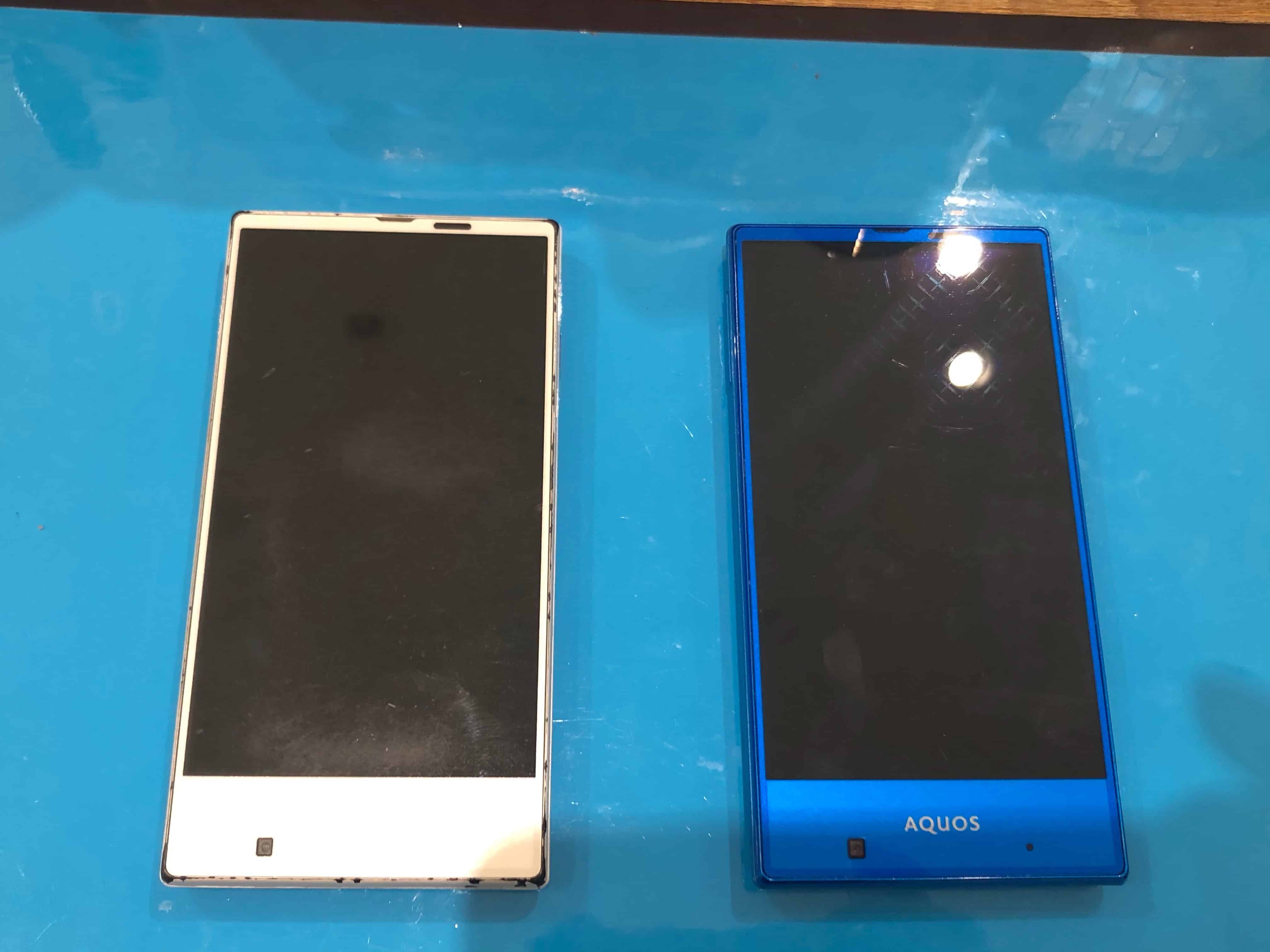 右にあるブルーのAQUOSが正常に動く中古品の端末になります。
