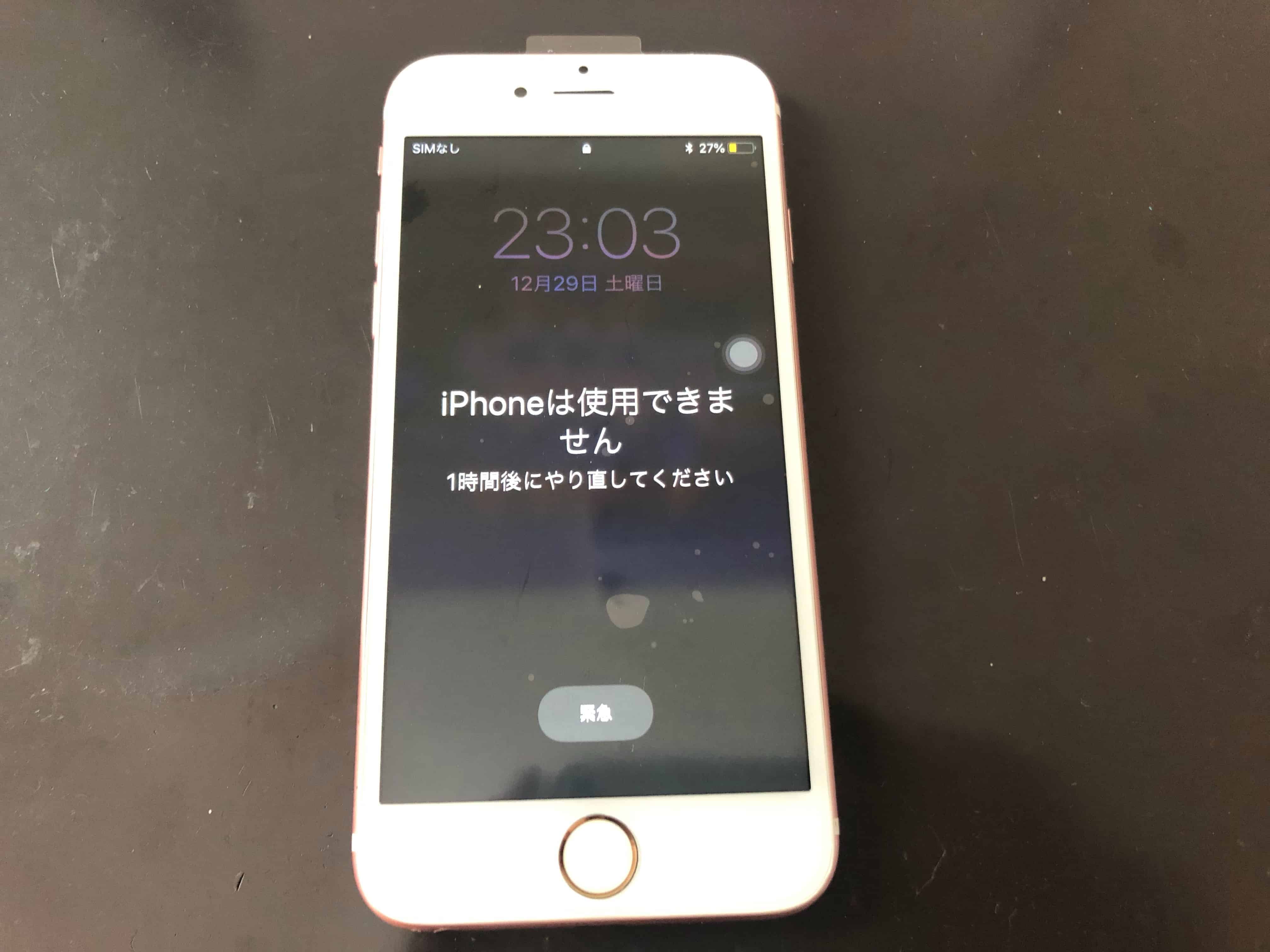 この表示はどういうものかというと、画面のロックをしているパスコードを連続で間違えてしまうと表示される内容です。
