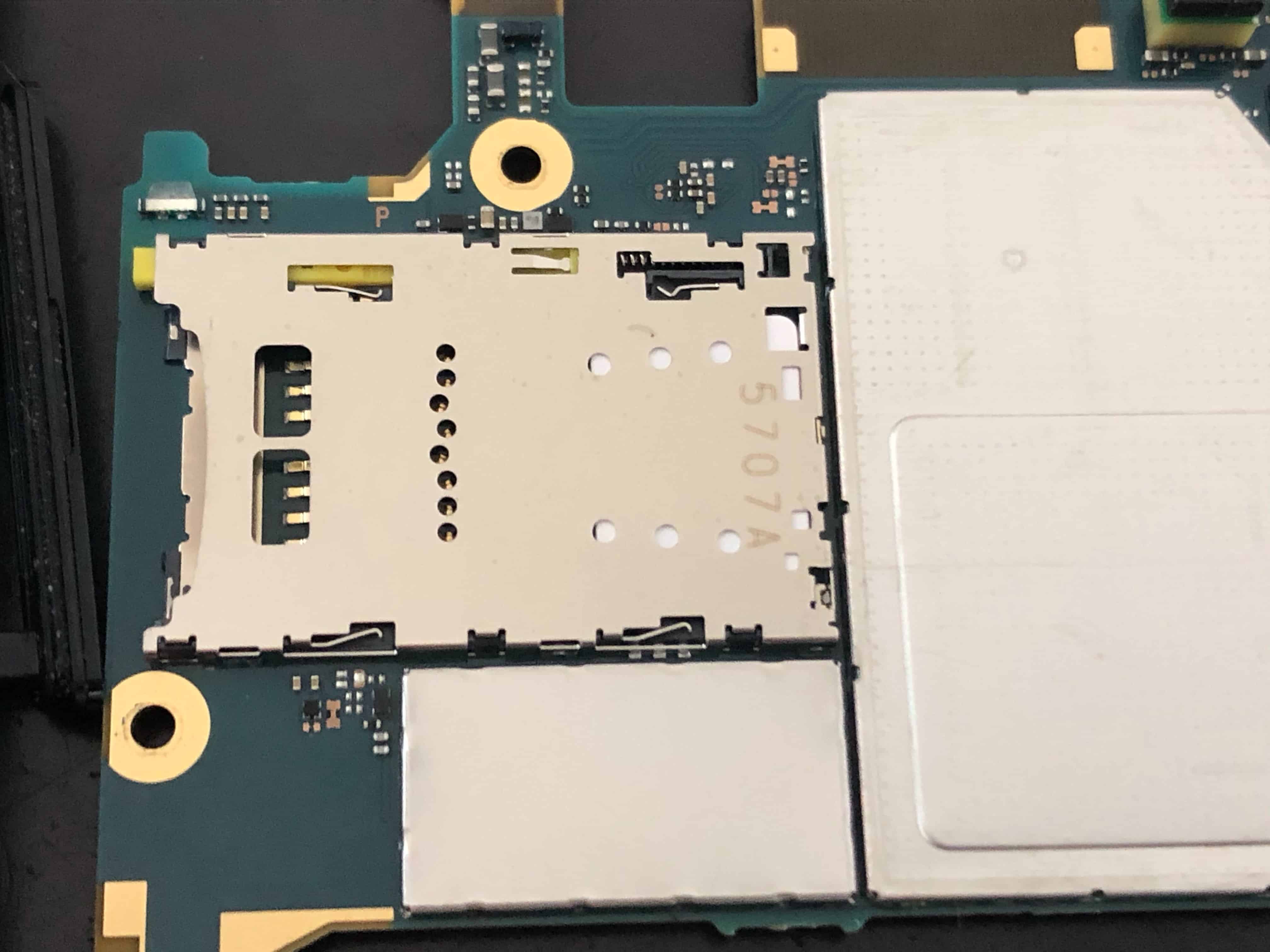 取り外したメイン基板の裏側にSIMカードスロットがあることを確認できます。