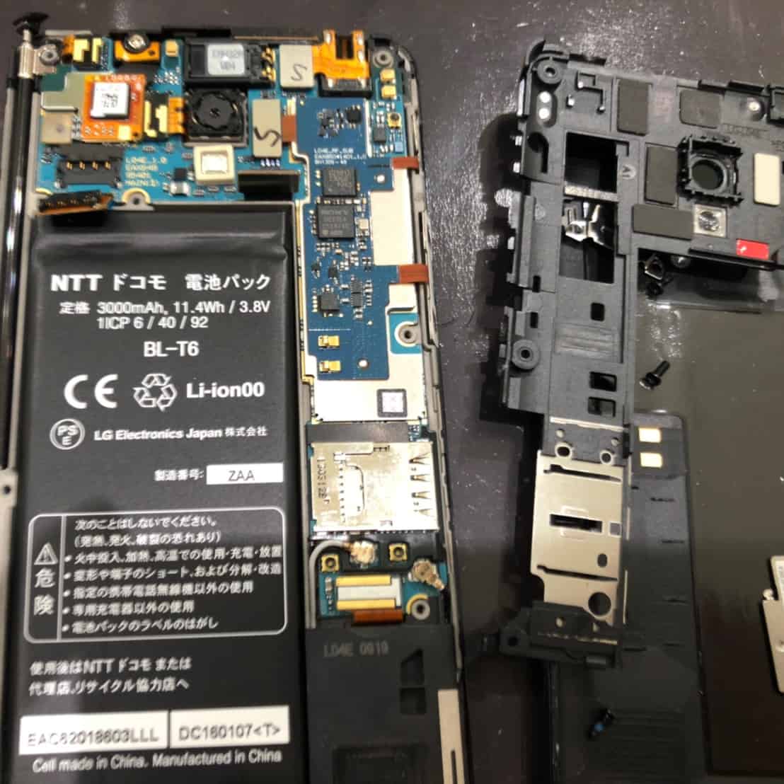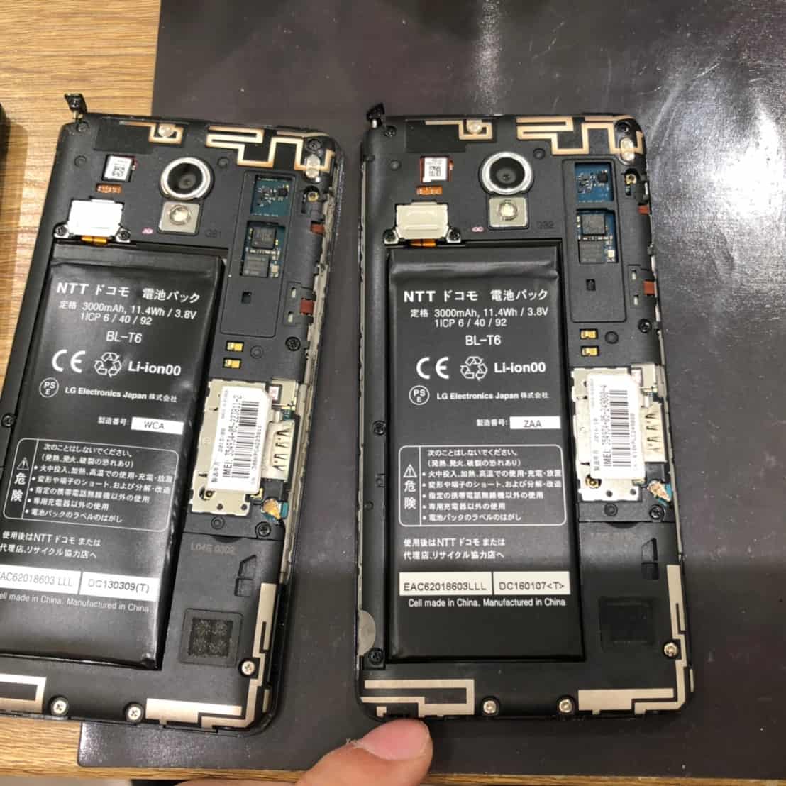 2013年生産のスマートフォンという事で古い機種では部品生産が終了していたり、今回のLG製のスマホの場合は交換用の修理部品の入手が難しく、通常は修理を行わない機種になります。