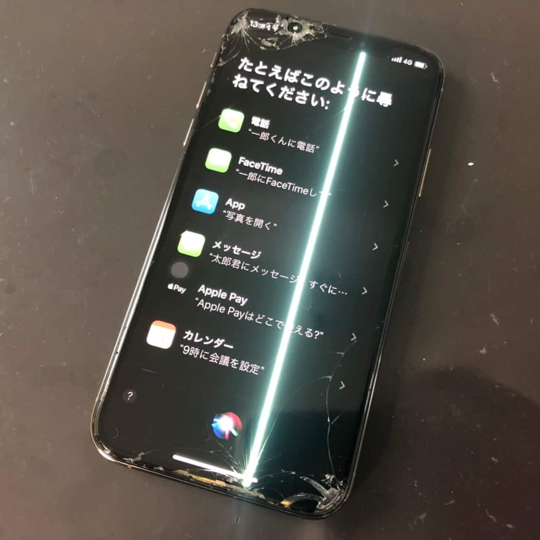 iPhone XSが画面故障で操作不能になった。さらに白い線まで映っているけど画面の修理ですべて直ります。
