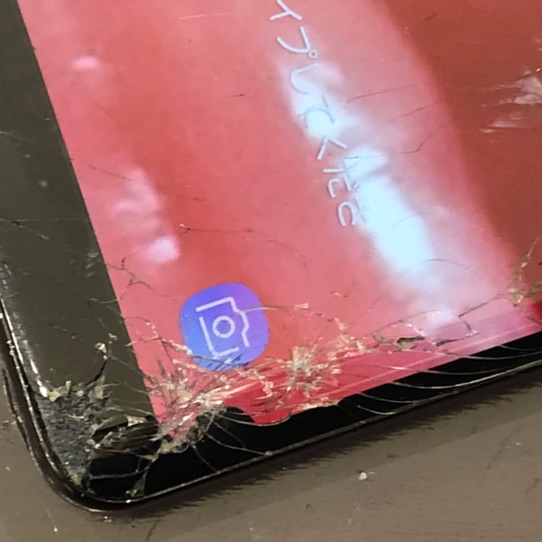 画面の右下の角から割れてしまっていますね。