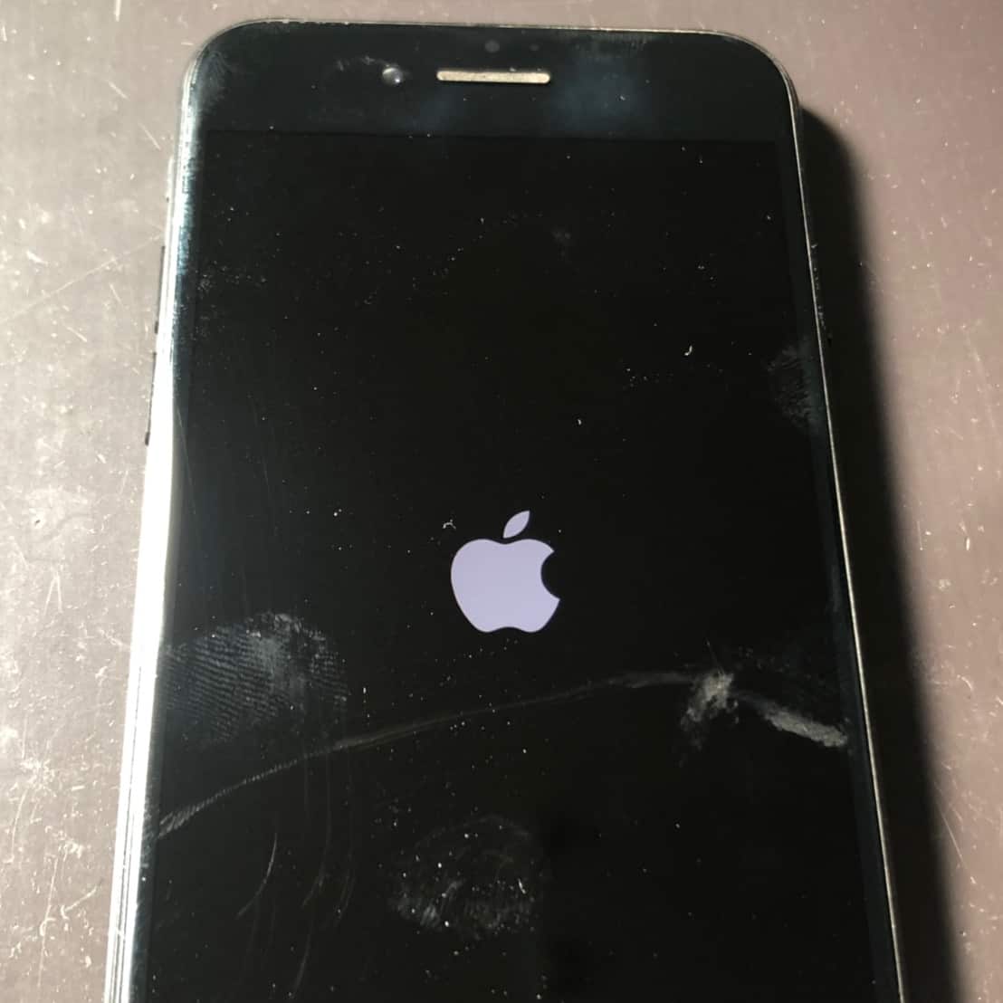 電源を付けようとしても起動画面のAppleのロゴで止まってしまい、しばらくすると画面が暗転してまた同じAppleロゴの画面で止まります。いわゆるAppleループ・リンゴループという症状です。
