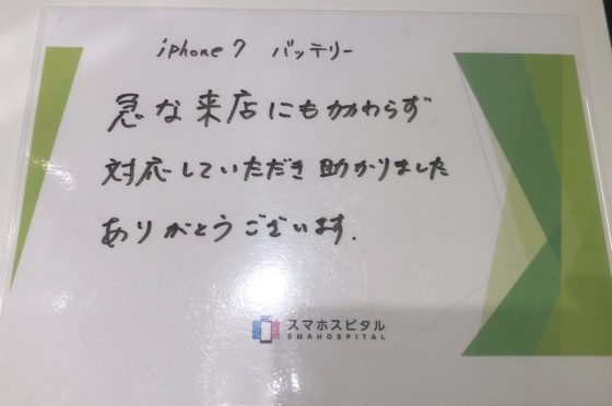 iPhone 7 バッテリー交換でお客様の声をいただきました!2022年8月26日
