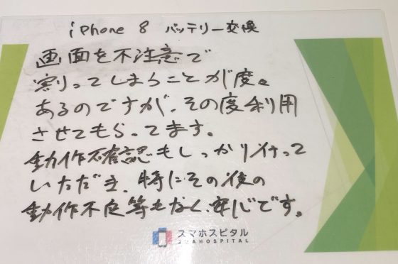 iPhone 8バッテリー交換2022/8/13お客様の声をいただきました!