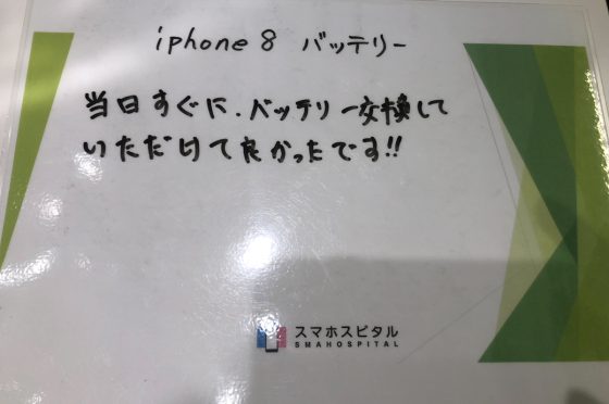 iPhone 8バッテリー交換2022/8/13お客様の声をいただきました!