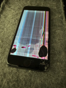 iPhone8 液晶破損で操作ができなくなってしまった端末。画面交換で復旧しました。