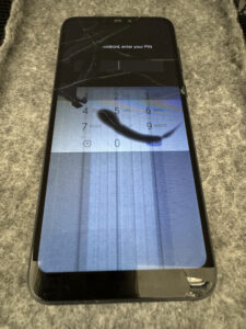 画面が割れて、液晶にも黒い液漏れあとや線が出てきている状態でした。