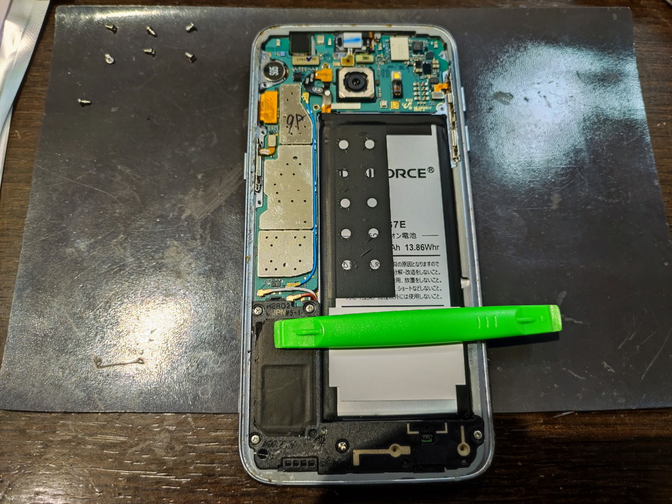 Galaxyシリーズのバッテリーは両面テープでがっちりと固定されているため外すのが一苦労です。