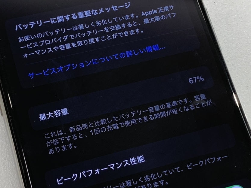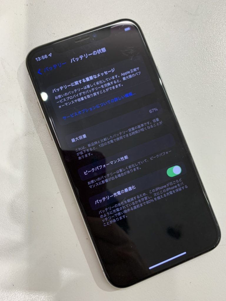 最大容量が67%に劣化したiPhoneXのバッテリー交換を行いました