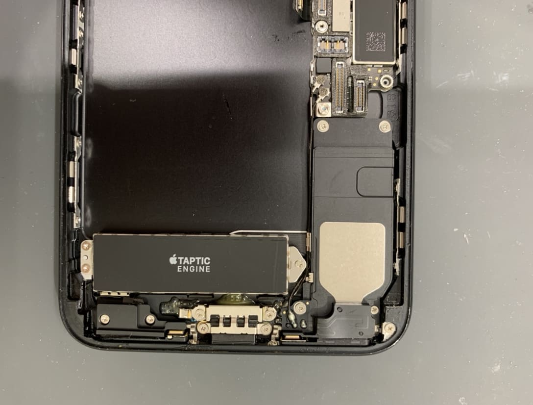 右に見えるのはスピーカー、TAPTIC ENGINEと書いてあるのはバイブレーターという、振動を生み出す部品ですね。