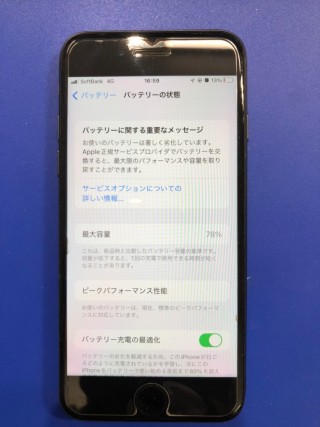 今回は、バッテリーの持ちが悪い、減りが早い…との事で、バッテリーの最大容量、78%から100%になりました!
