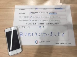 スマホスピタル 新宿 【iPhoneSE(第一世代)】画面交換修理のK様よりコメントを頂きました!