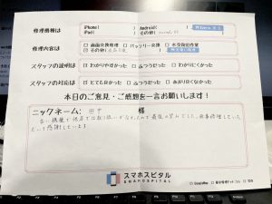 スマホスピタル 新宿 初代DSの液晶交換修理の田中様からコメントをいただきました!
