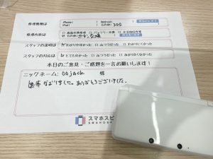 スマホスピタル 新宿 3DSのスライドパッドユニット交換修理のお客様からコメントをいただきました!