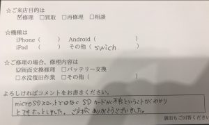 microSDカードスロットではなくSDカードの不良という事が分かり とてもホッとしました。ご対応ありがとうございました。
