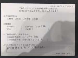 スマホスピタル 新宿 galaxyS20+5Gのカメラレンズ修理のお客様からコメントをいただきました!