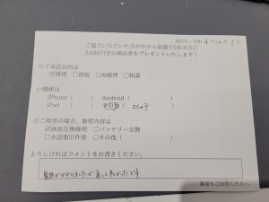 スマホスピタル 新宿 Switch液晶画面交換のお客様よりコメントをいただきました!