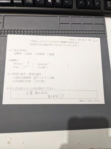 スマホスピタル 新宿 iPhone7のバッテリー交換修理のお客様からコメントを受けました