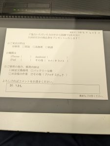 スマホスピタル 新宿 Switchライトのアナログスティック交換のお客様よりコメントを頂きました。