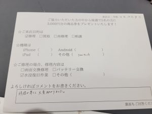 スマホスピタル 新宿 Switch水没復旧修理のお客様よりコメントを頂きました。