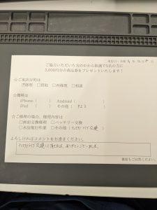 スマホスピタル 新宿 PS3の修理のお客様よりコメントを頂きました。