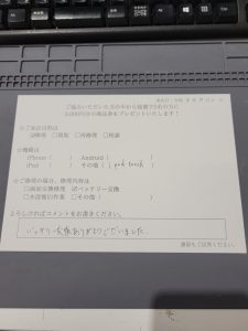 スマホスピタル 新宿 ipod touch第6世代のバッテリー交換修理のお客様からコメントを頂きました