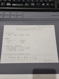 スマホスピタル 新宿 iPhone 8の画面交換修理のお客様からコメントをいただきました