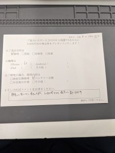 スマホスピタル 新宿 iPhone6sのバッテリー交換のお客様よりコメントを頂きました。