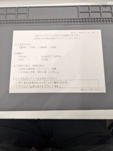 スマホスピタル 新宿 Android BASIOのメンテナンスの修理のお客様よりコメントを頂きました。