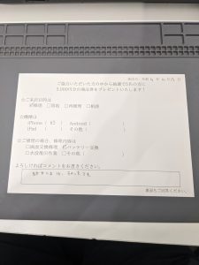 スマホスピタル 新宿 iPhone6sのバッテリー交換のお客様よりコメントを頂きました