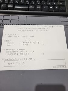 スマホスピタル 新宿 Galaxy S8のバッテリー交換修理のお客様からコメントをいただきました