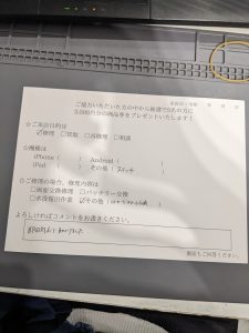 スマホスピタル 新宿 SwitchのSDカードスロットの修理のお客様よりコメントを頂きました。
