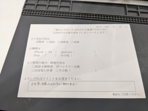 スマホスピタル 新宿 iPhoneXsの バッテリー交換のお客様よりコメントを頂きました
