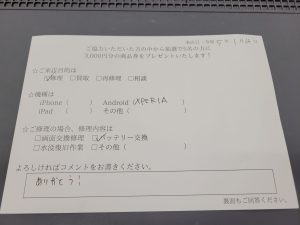 スマホスピタル 新宿 Xperiaのバッテリー交換のお客様からコメントを頂きました