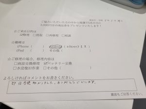 スマホスピタル 新宿 Xperia 1-2のバッテリー交換のお客様からコメントをいただきました