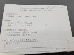 スマホスピタル 新宿 iPhone Xのバッテリー交換のお客様からコメントを頂きました