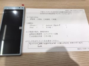 スマホスピタル 新宿 Xperia8画面交換修理のお客様よりコメントを頂きました。