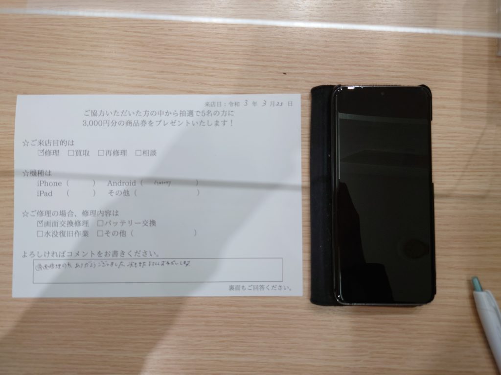 画面修理の方、ありがとうございました。次もまたよろしくおねがいします。
