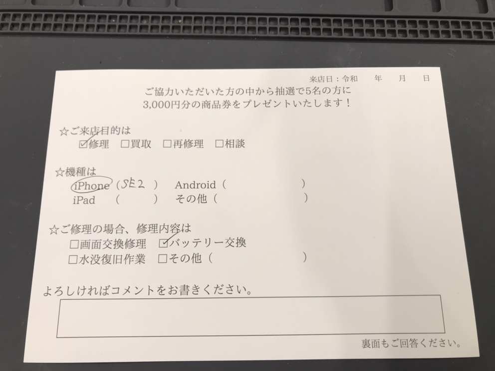 スマホスピタル 新宿 iPhoneSE2の修理のお客様よりコメントを頂きました。