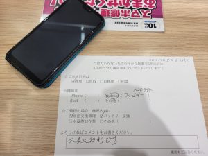 スマホスピタル 新宿 Huawei P20liteの画面交換のお客様からコメントをいただきました