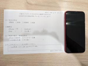 スマホスピタル 新宿 iPhone11の画面交換のお客様よりコメントを頂きました。