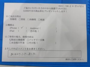 スマホスピタル 新宿 iPhoneSE(第二世代)の画面割れ修理のお客様よりコメントをいただきました。