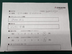 スマホスピタル 新宿 【iPhoneSE(第二世代)】お客様よりコメントをいただきました!