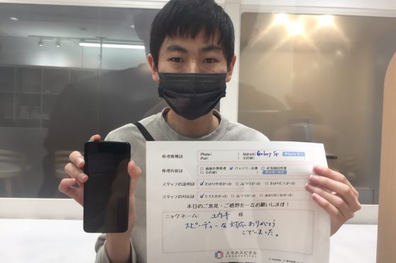 【galaxy S9】バッテリー交換修理をご依頼いただいた、ユウキ様からコメントを頂きました。