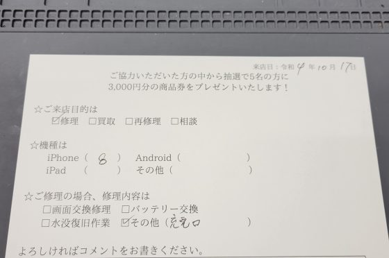 iPhone 8のドックコネクター交換修理のタツヤ様からコメントをいただきました!